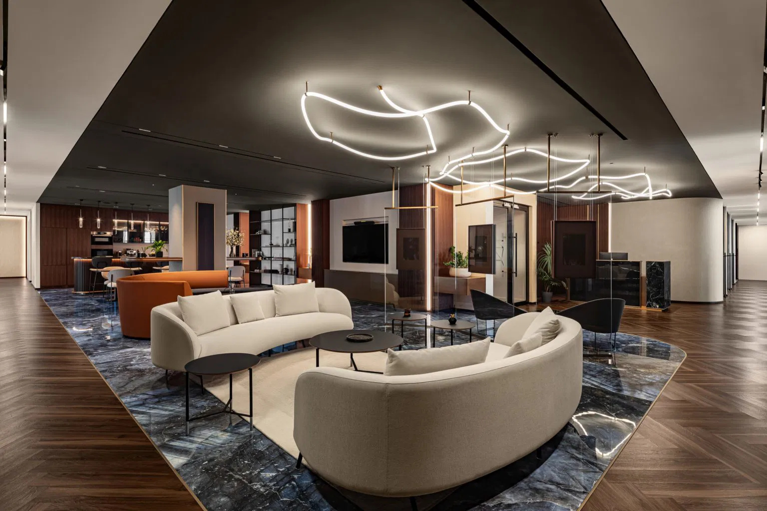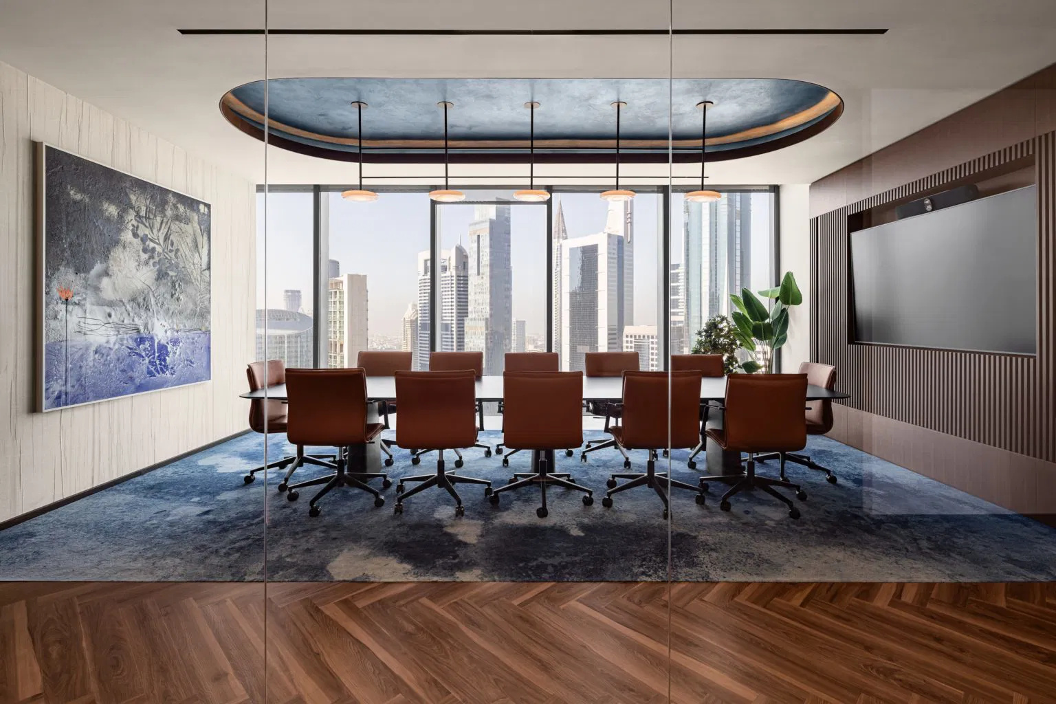 Premium Omexco wallpaper was installed throughout the office space at ICD Brookfield Place in Dubai, creating a sophisticated and inviting atmosphere. The rich textures and elegant finishes of the wallpaper complement the modern architecture of the space, adding warmth, depth, and a touch of luxury to the overall interior design.