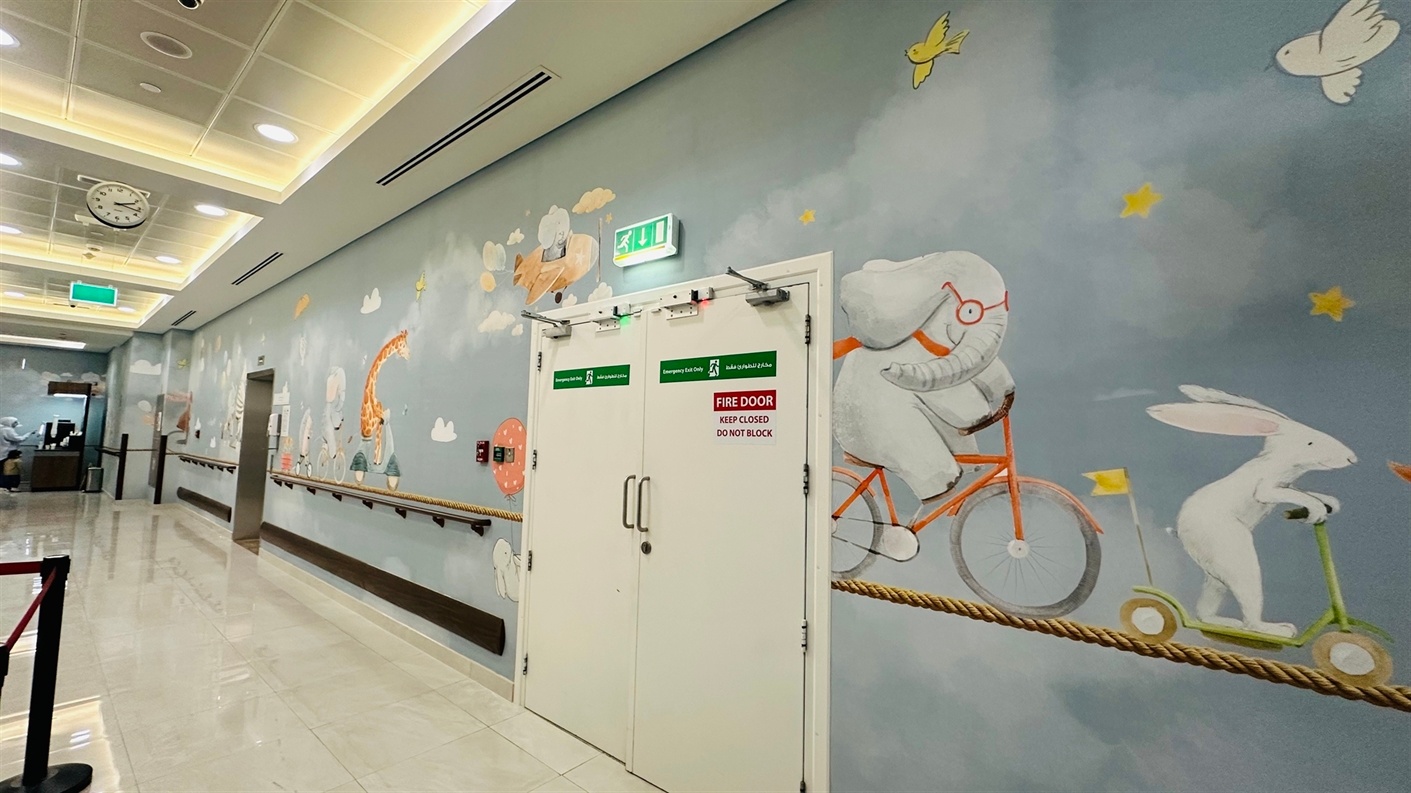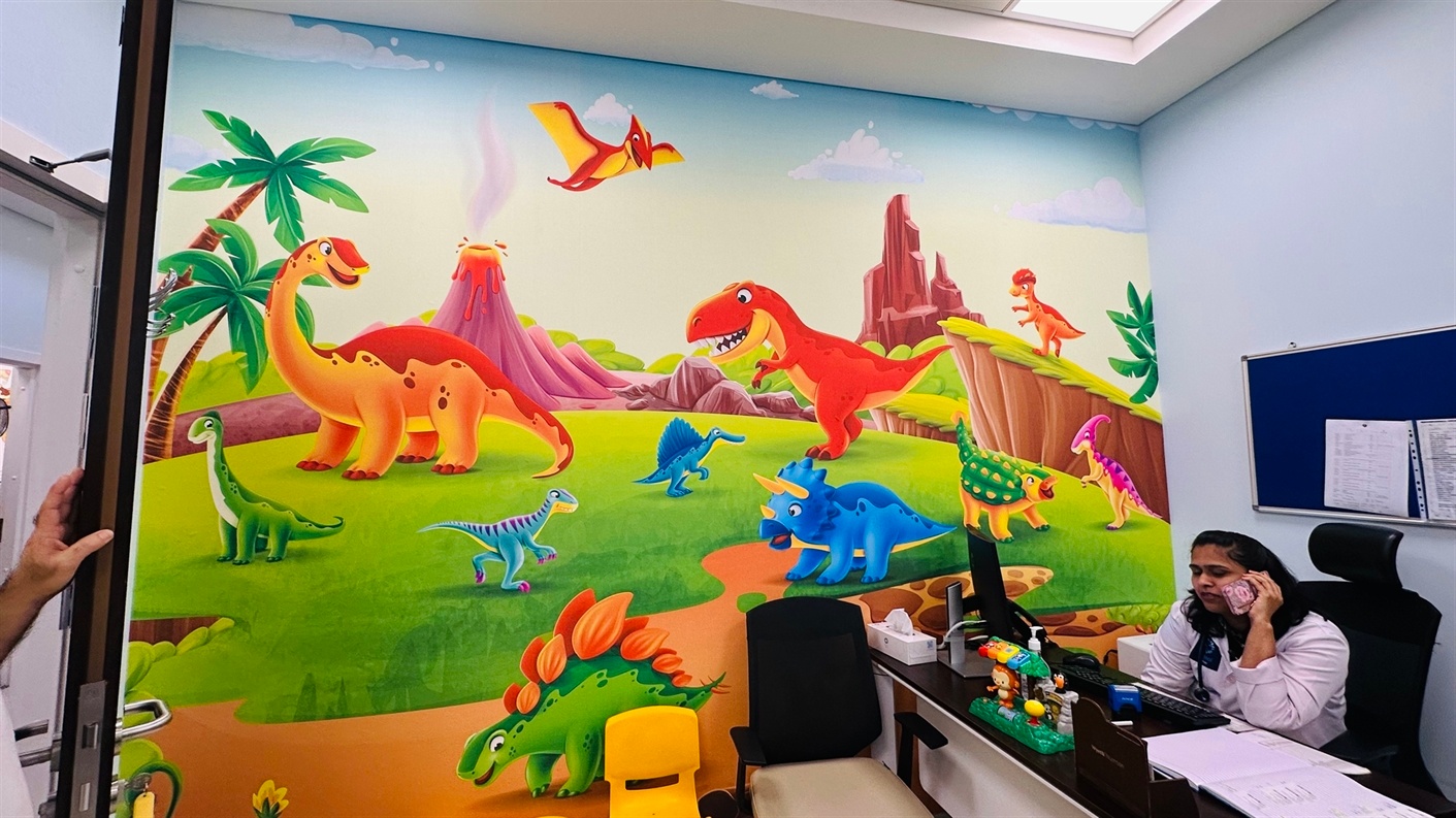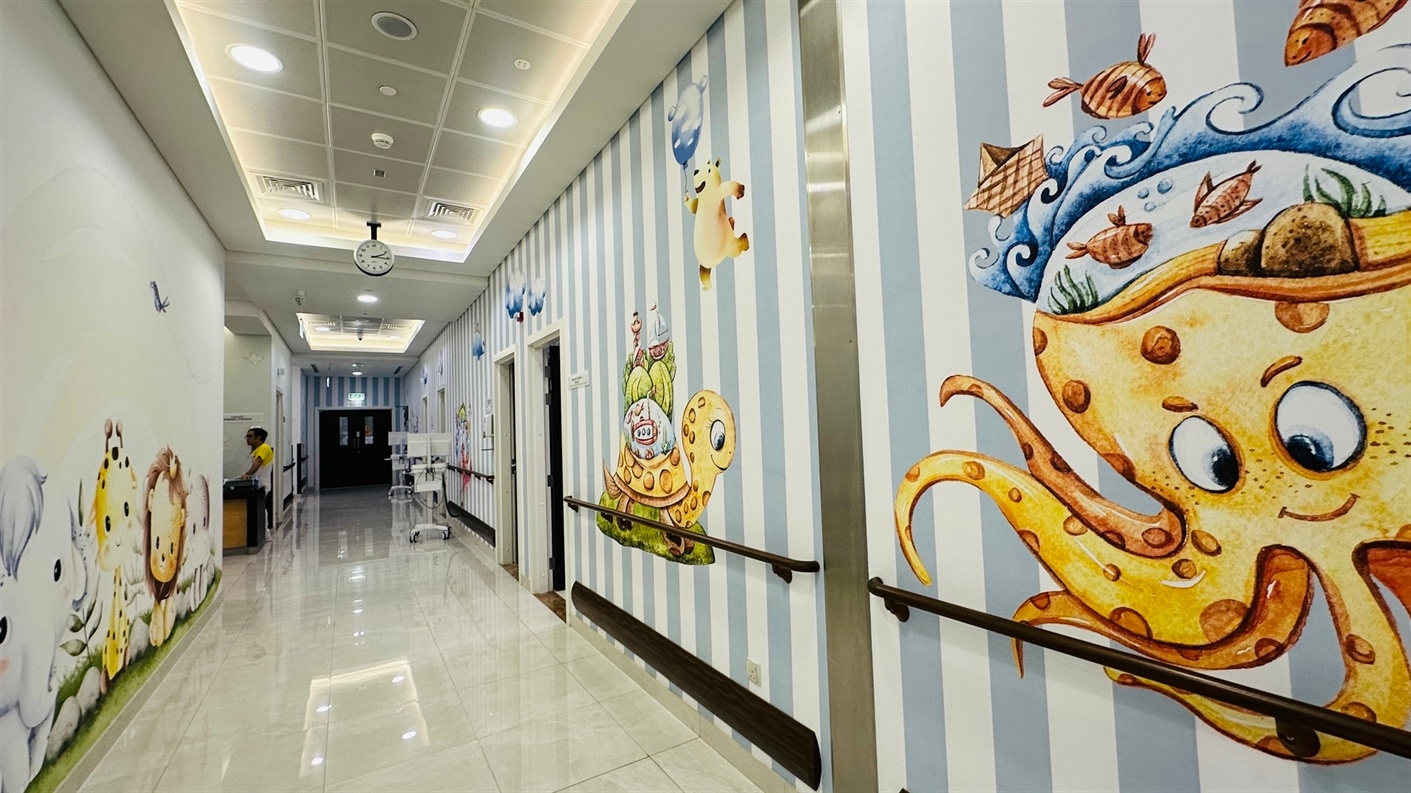 A vibrant and playful digital wallpaper designed for Burjeel Hospital by NGC, specially crafted to bring joy and comfort to young patients. Featuring a delightful mix of colorful illustrations, friendly characters, and uplifting elements, this design creates a warm and cheerful environment. Inspired by imagination and positivity, the wallpaper is designed to make children feel at ease while adding a touch of creativity to the hospital space.