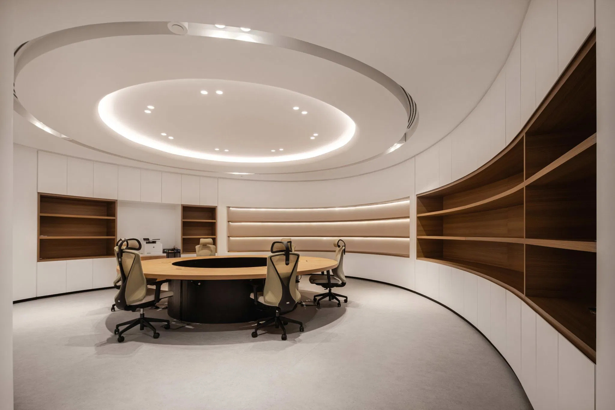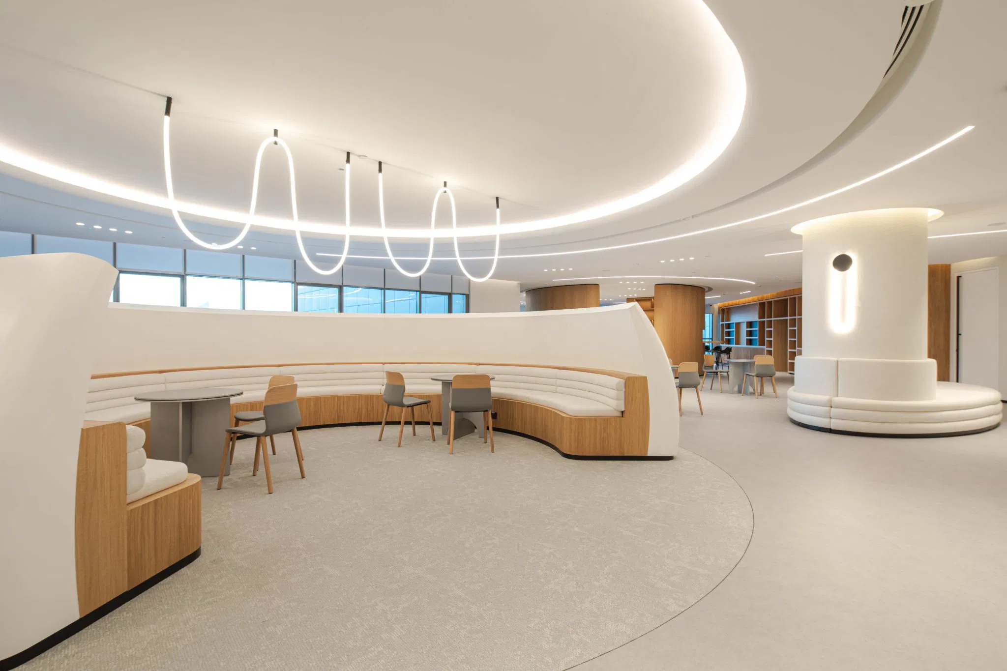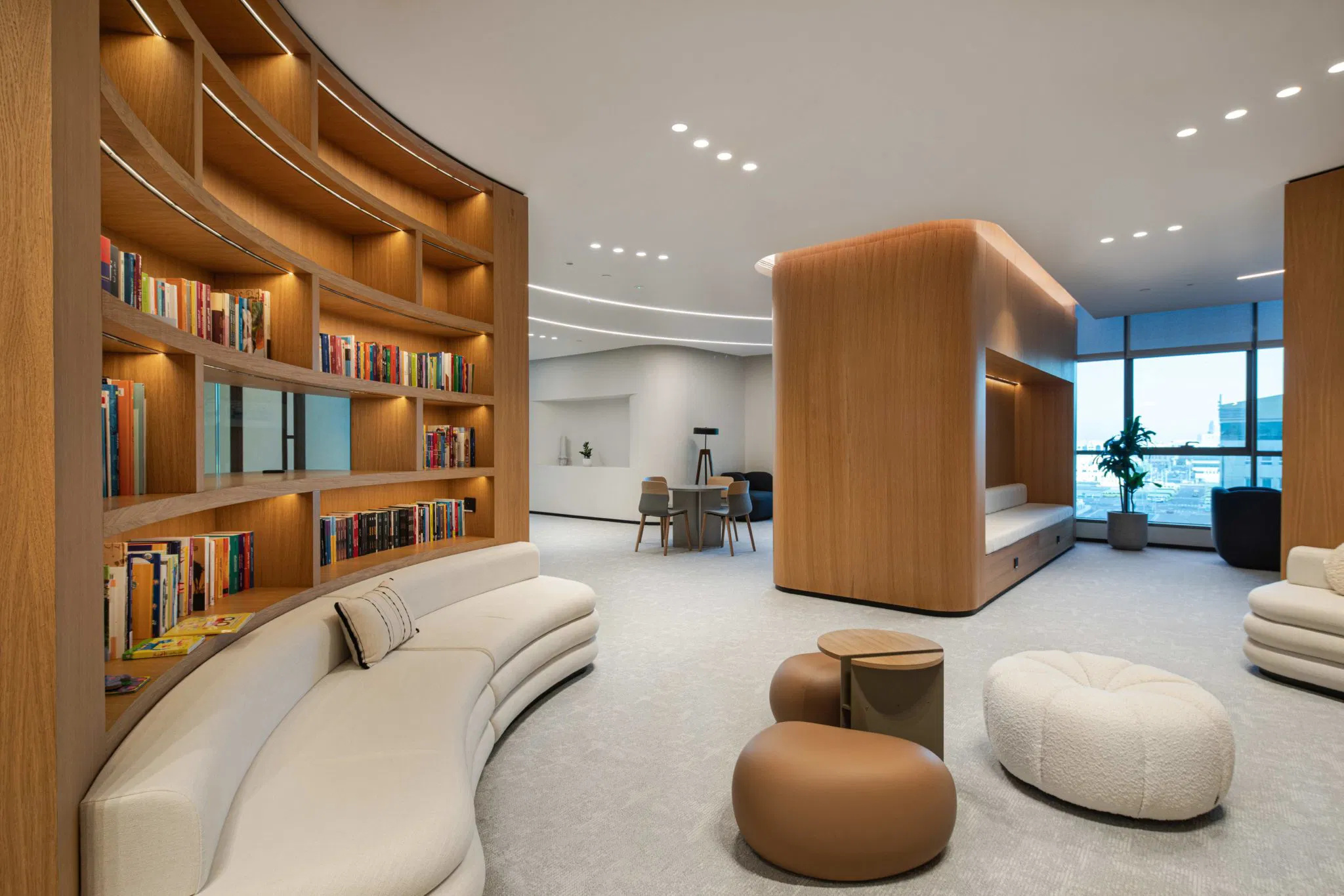 Roar has transformed two floors of the Ministry of Energy and Infrastructure’s Tower in Abu Dhabi into the National Academy for Childhood Development (NACD), the UAE’s first of its kind. This pioneering space is dedicated to empowering those who nurture children while preserving the Arabic language and national heritage. Inspired by the ripple effect of a water drop and the tradition of pearl diving, the design features circular and curvilinear shapes, symbolizing the lasting impact of early childhood development.
